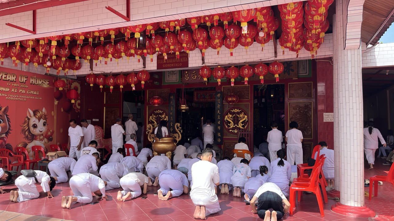 Gorontalo – Umat Tridharma di Kota Gorontalo menggelar persembahyangan Goan Siao sebagai bagian dari rangkaian perayaan Tahun Baru Imlek sekaligus prosesi memohon izin dan restu untuk pelaksanaan Cap Go Meh, Jumat (20/2/2026).
