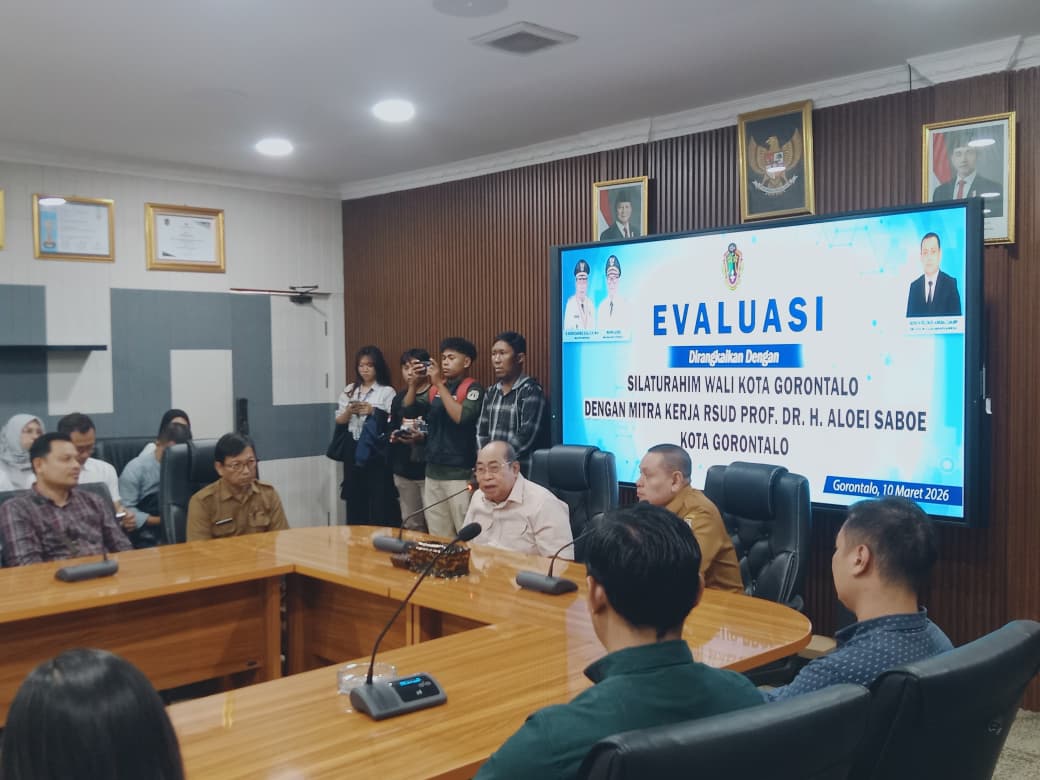 GORONTALO – Pemerintah Kota Gorontalo menggelar kegiatan evaluasi yang dirangkaikan dengan silaturahmi antara Wali Kota Gorontalo dan para mitra kerja RSUD Prof. Dr. H. Aloei Saboe. Kegiatan tersebut berlangsung di Ruang Pola Kantor Wali Kota Gorontalo pada Selasa (10/3/2026) mulai pukul 13.00 WITA.